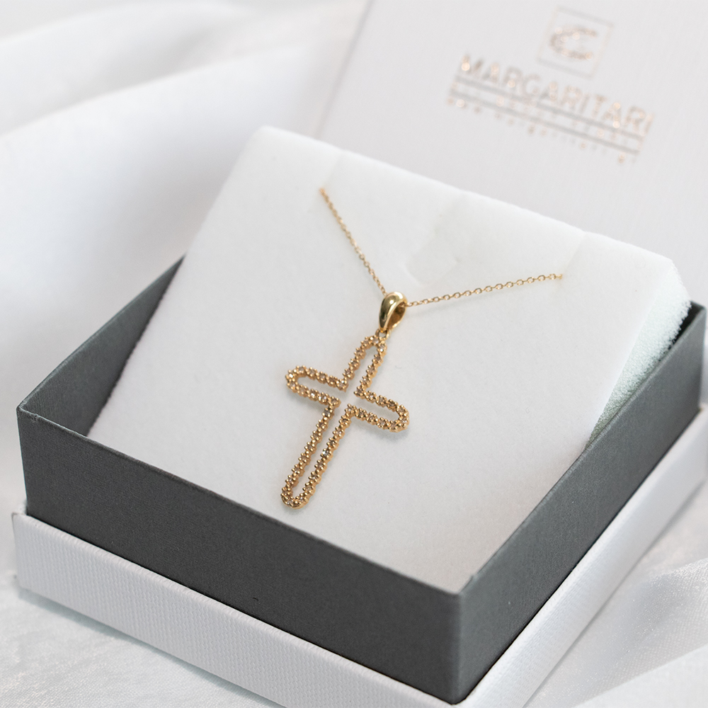 • Ένας υπέροχος χρυσός σταυρός 18 καρατίων με λουστρέ φινίρισμα.