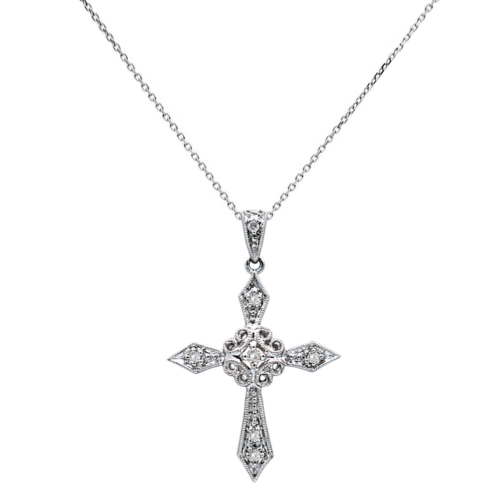 • Ένας υπέροχος λευκόχρυσος σταυρός 18 καρατίων.