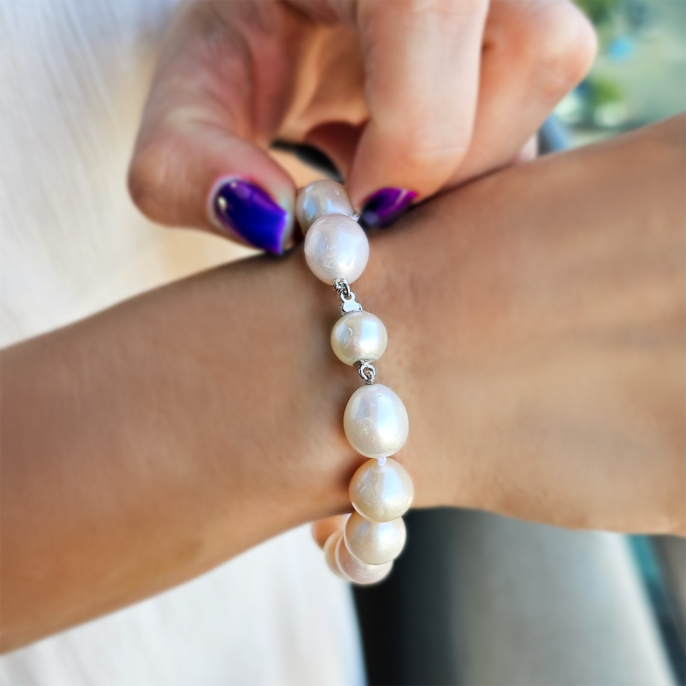 Ένα εντυπωσιακό σε μέγεθος και σχήμα μαργαριταρένιο βραχιόλι σε εκπληκτική τιμή για να σας συνοδεύει σε όλες σας τις εμφανίσεις.
