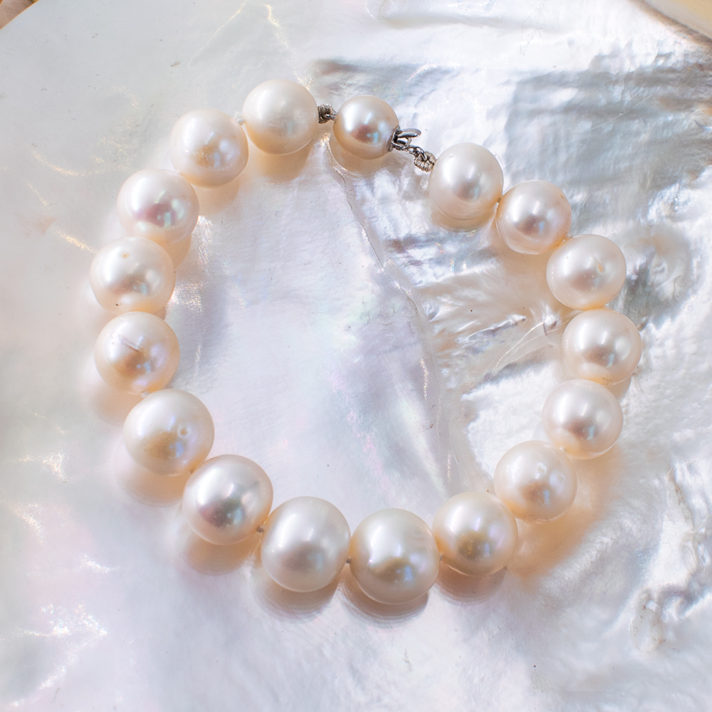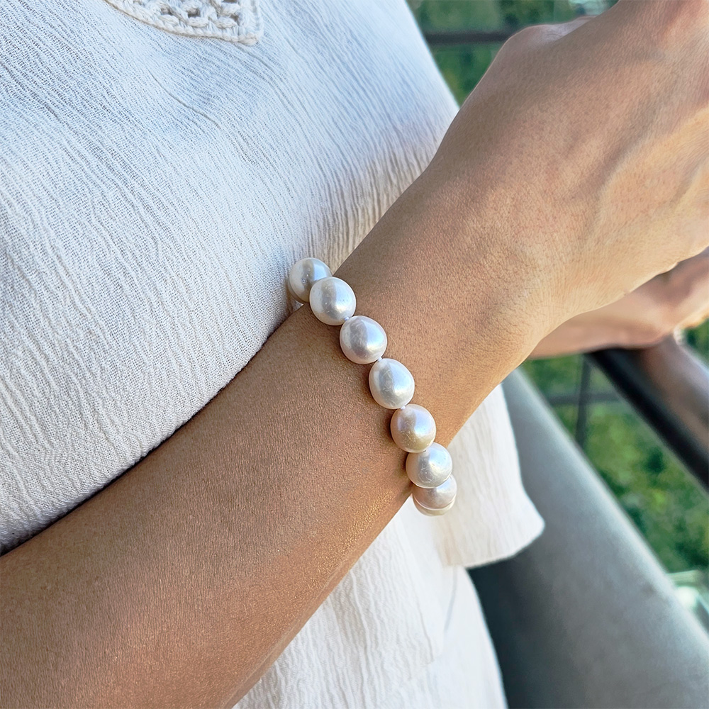 • Ένα υπέροχο βραχιόλι με εντυπωσιακά λευκά μαργαριτάρια γλυκού νερού Fresh Water Pearl διαμέτρου 11-13 χιλιοστών, άριστης ποιότητας.