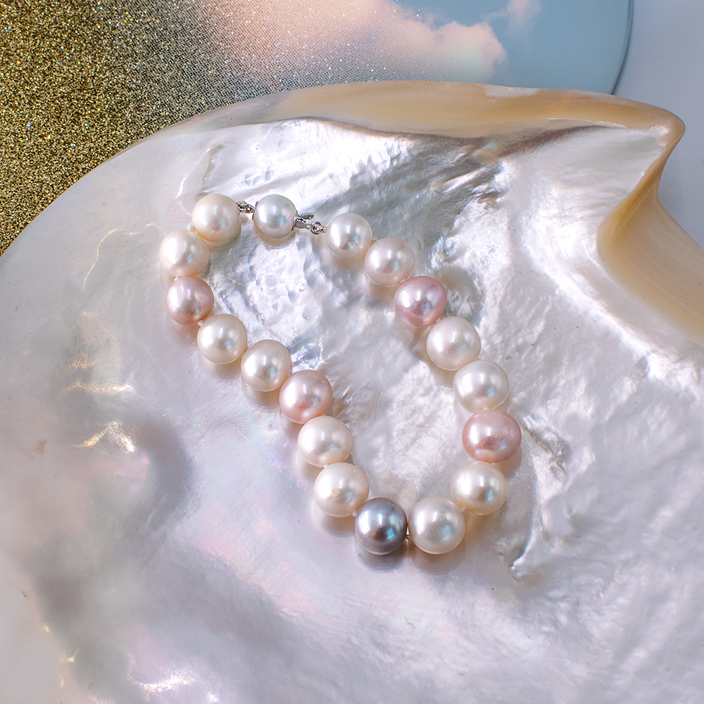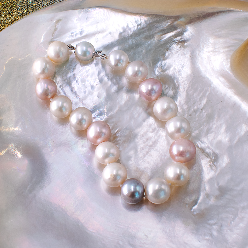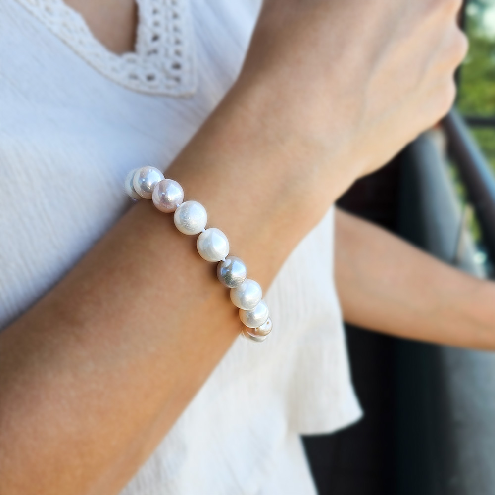 • Ένα υπέροχο βραχιόλι με εντυπωσιακά multi  φυσικού χρωματισμού μαργαριτάρια γλυκού νερού Fresh Water Pearl διαμέτρου 10-11,5 χιλιοστά, άριστης ποιότητας.