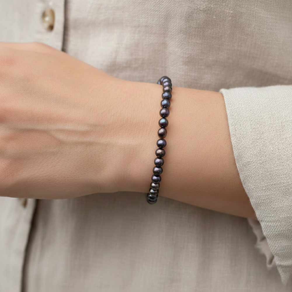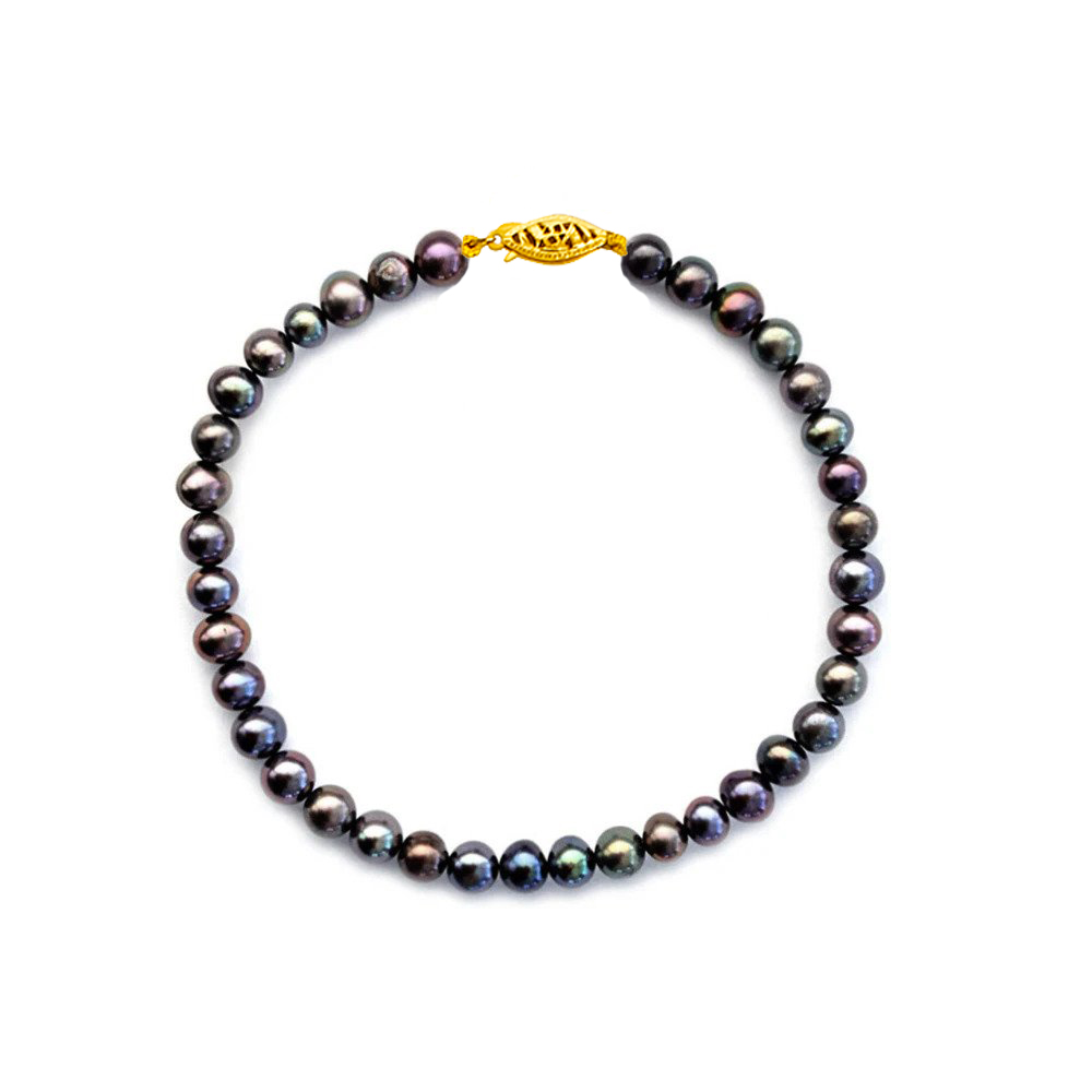 • Ένα υπέροχο βραχιόλι με μαύρα μαργαριτάρια Fresh Water Pearl διαμέτρου χιλιοστών.