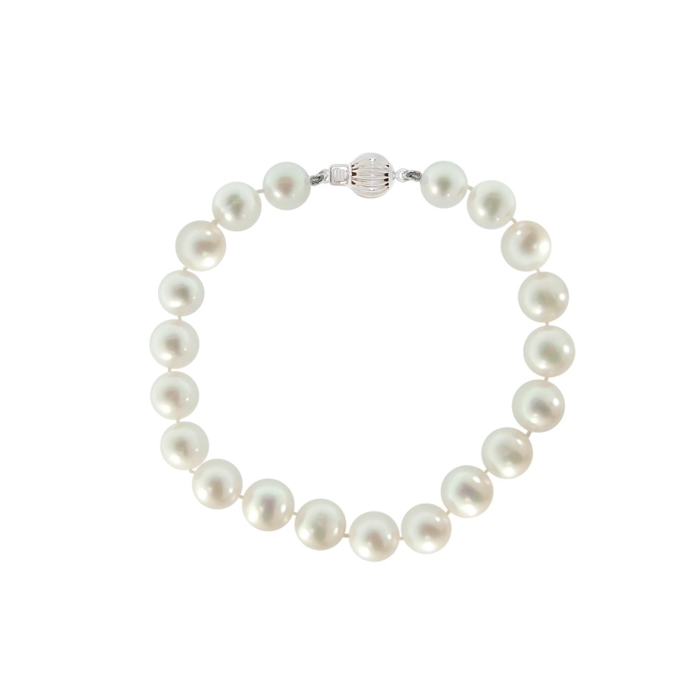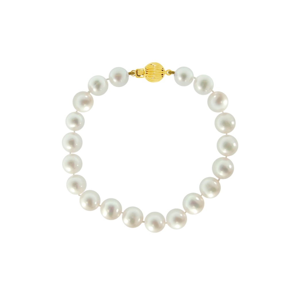 • Ένα υπέροχο βραχιόλι με λευκά μαργαριτάρια Fresh Water Pearl, άριστης ποιότητας διαμέτρου 8 - 9 χιλιοστών και χρυσό κούμπωμα ασφαλείας 14 καρατίων.