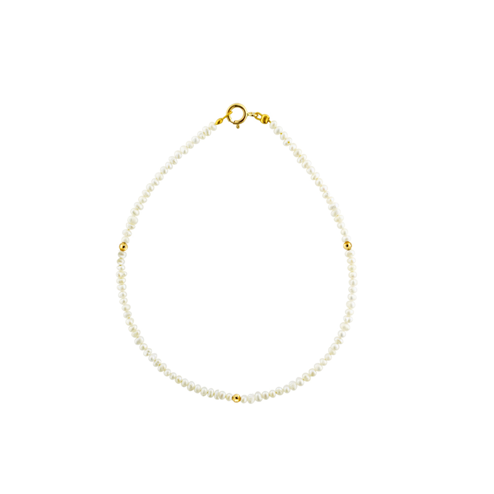 Βραχιόλι με Κ14 χρυσό κούμπωμα και λευκά μαργαριτάρια - M120709