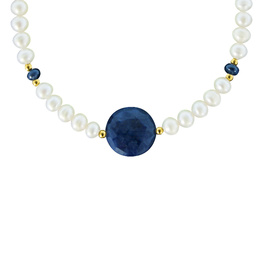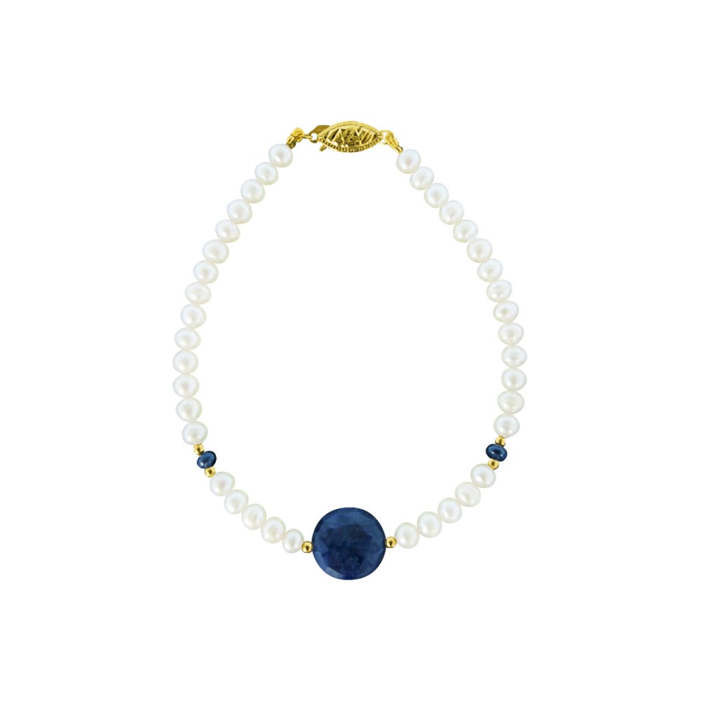 Βραχιόλι με Κ14 χρυσά στοιχεία, μαργαριτάρια και ζαφείρια - M122167S