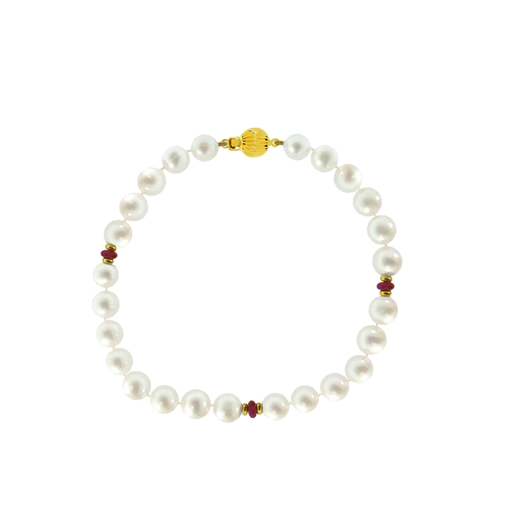 Βραχιόλι με χρυσό Κ14 κούμπωμα, μαργαριτάρια 6,0-6,5mm και πολύτιμους λίθους - M121143R