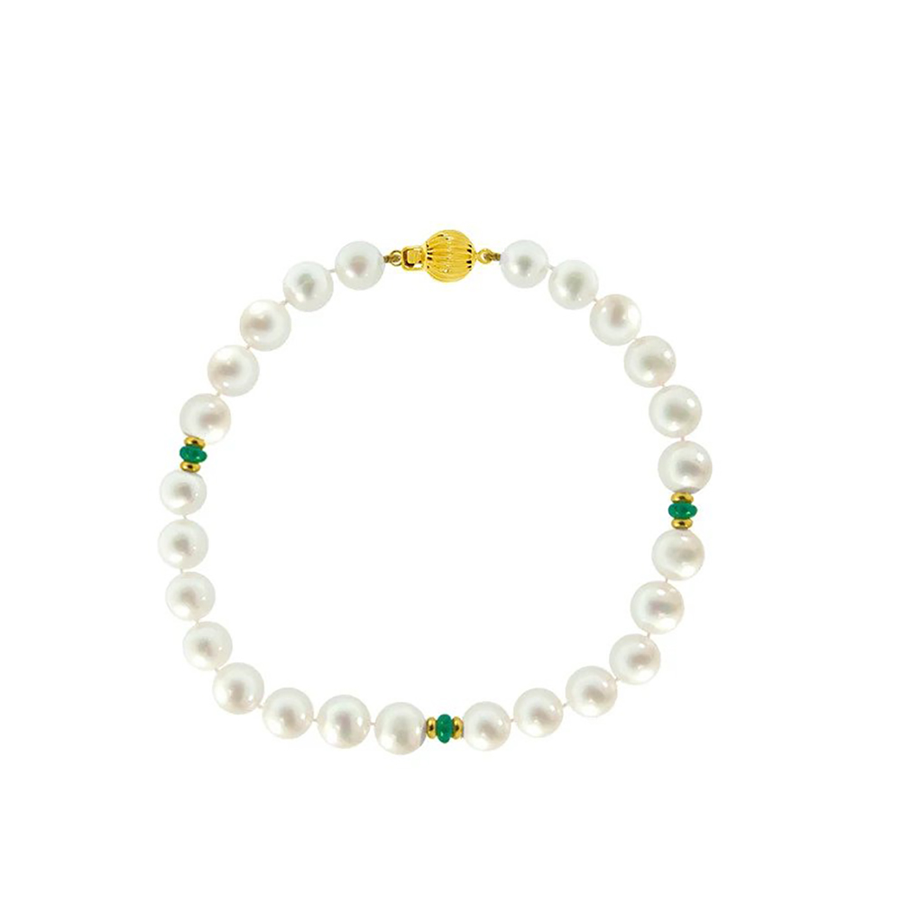 Βραχιόλι με χρυσό Κ14 κούμπωμα, μαργαριτάρια 6,0-6,5mm και πολύτιμους λίθους - M121143E