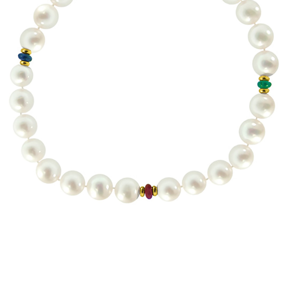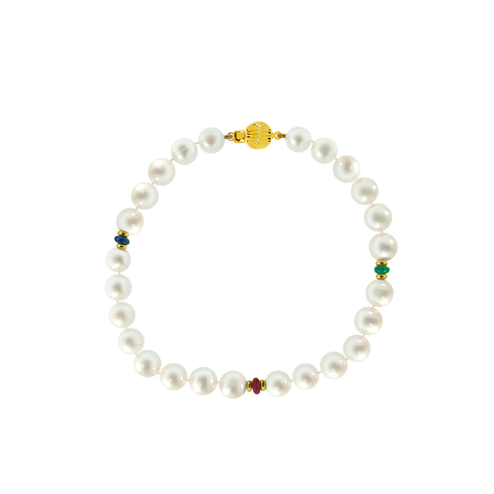 Βραχιόλι με χρυσό Κ14 κούμπωμα, μαργαριτάρια 6,0-6,5mm πολύτιμους λίθους - G121143