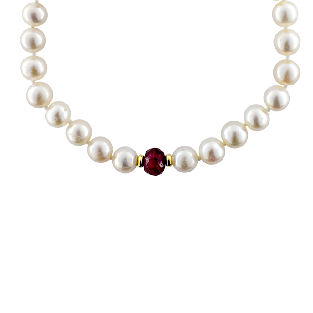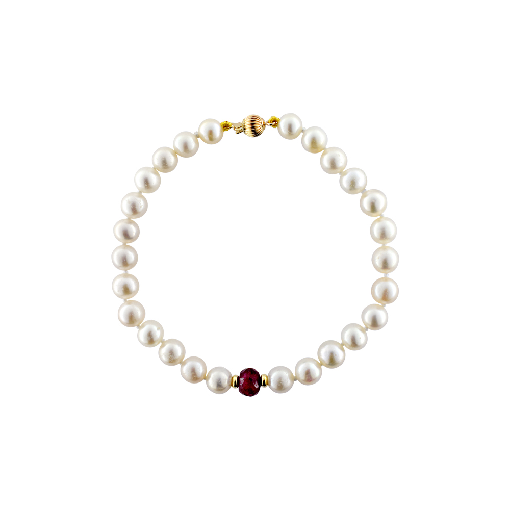 Βραχιόλι με Κ14  χρυσό κούμπωμα, μαργαριτάρια 6,0-6,5mm και ρουμπίνι - G122889R