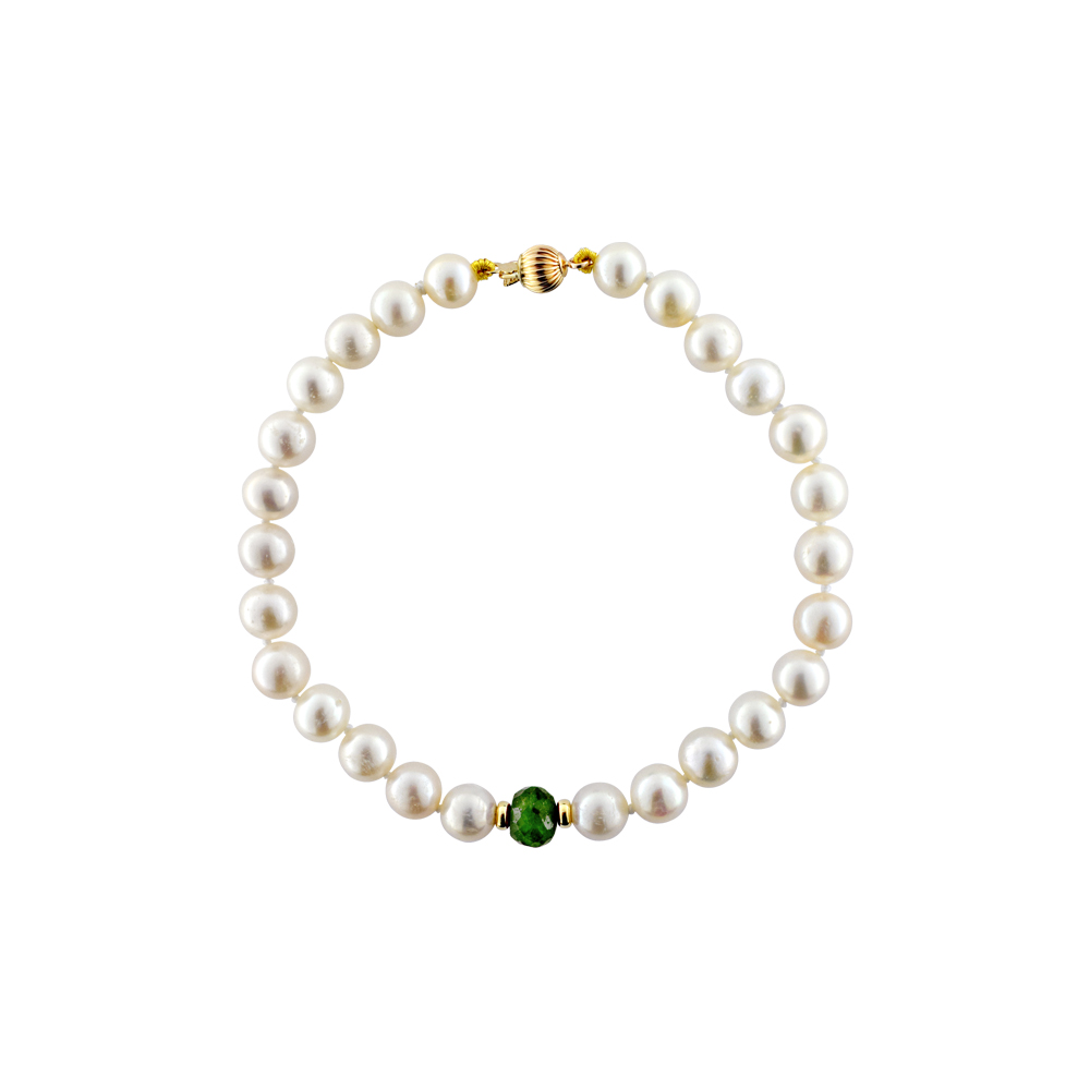 Βραχιόλι με Κ14 χρυσό κούμπωμα, μαργαριτάρια 6,0-6,5mm και σμαράγδι - G122889E