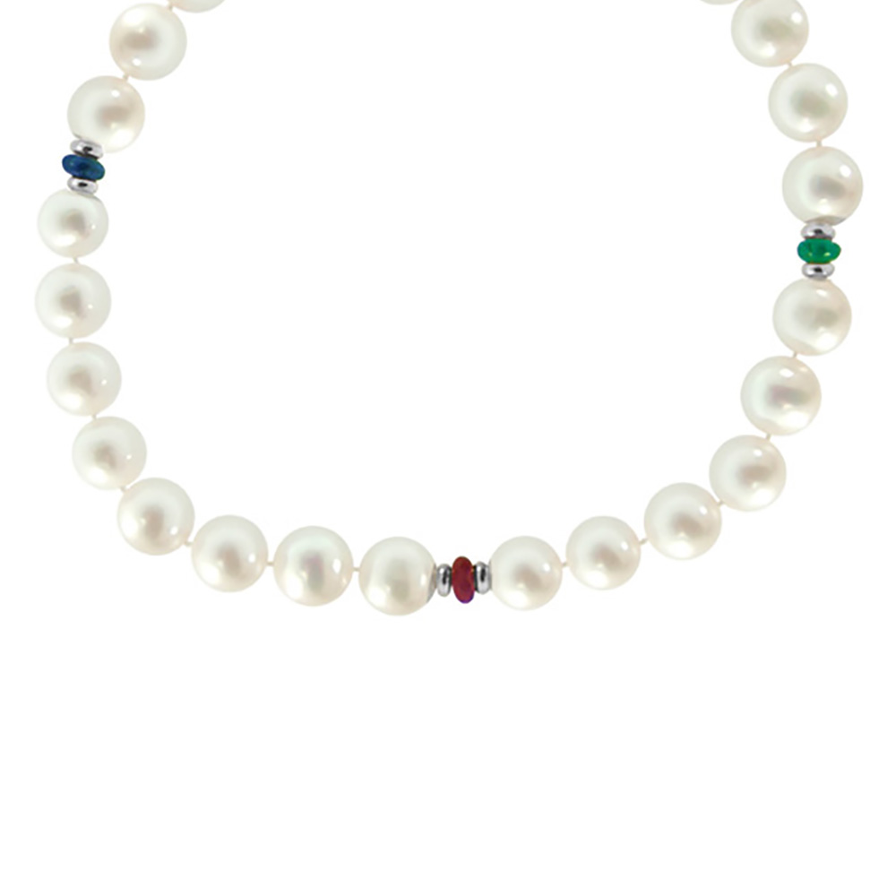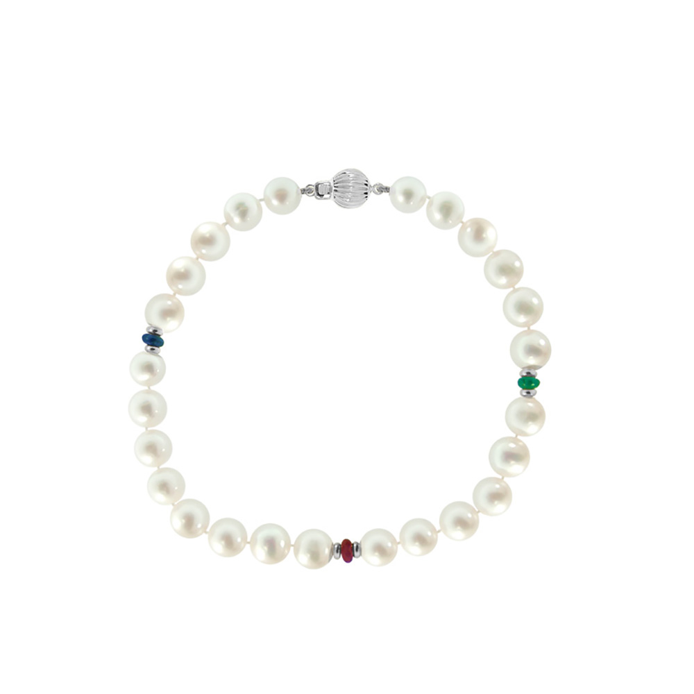 Βραχιόλι με Κ14 λευκόχρυσο κούμπωμα, μαργαριτάρια 6,0-6,5mm και πολύτιμους λίθους - W121143
