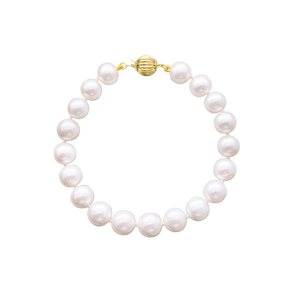 Βραχιόλι με Κ14 χρυσό κούμπωμα και λευκά μαργαριτάρια 10-11mm - G120536B