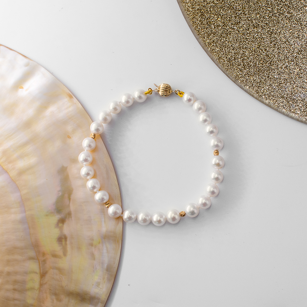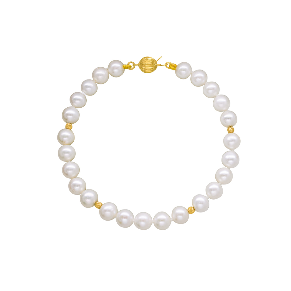 Βραχιόλι με Κ14 χρυσά στοιχεία και λευκά μαργαριτάρια - L124964