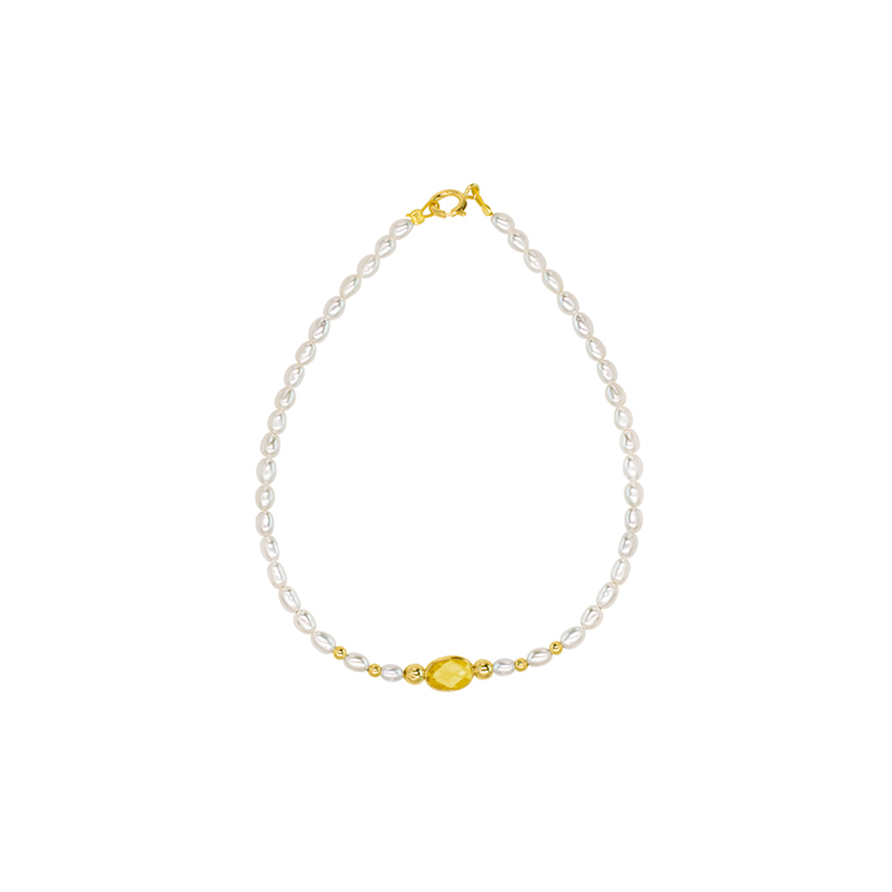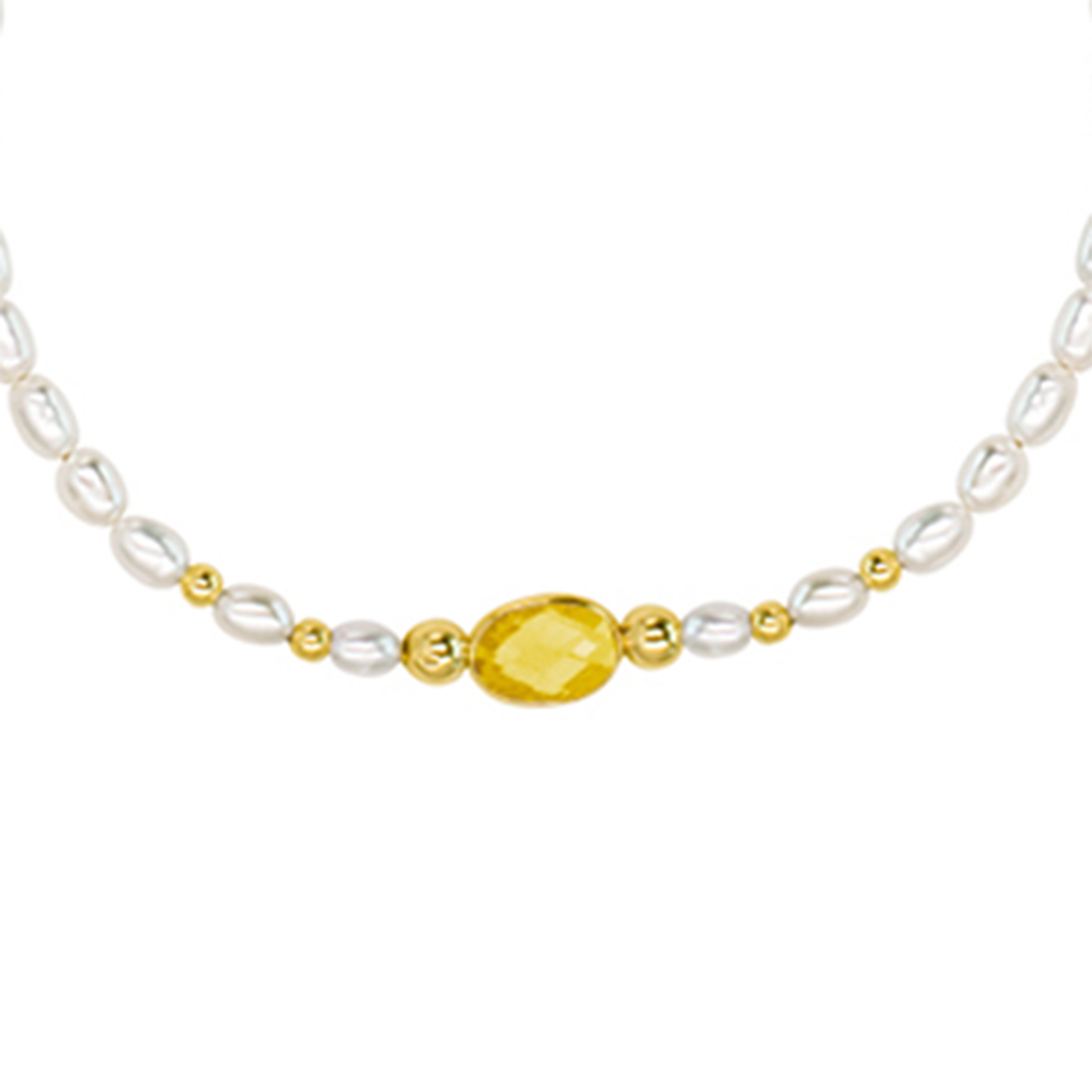 Βραχιόλι Κ14 χρυσό με λευκά μαργαριτάρια, citrine και χρυσά στοιχεία Κ14 - F124153C