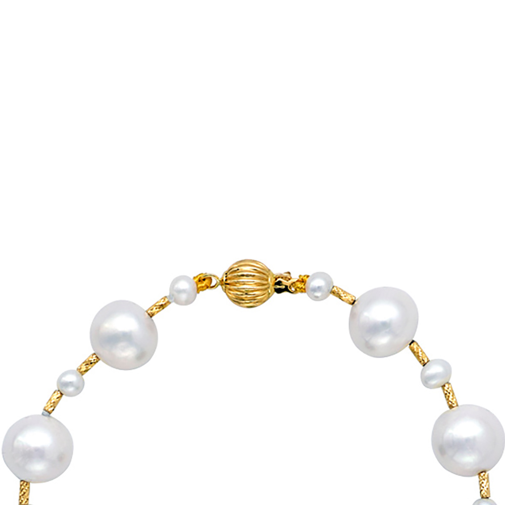 • Ένα φανταστικό βραχιόλι με 10 λευκά μαργαριτάρια γλυκού νερού Fresh Water Pearl διαμέτρου 3,5 - 4 χιλιοστών και 9 λευκά μαργαριτάρια γλυκού νερού Fresh Water Pearl διαμέτρου 10 χιλιοστών άριστης ποιότητας.
