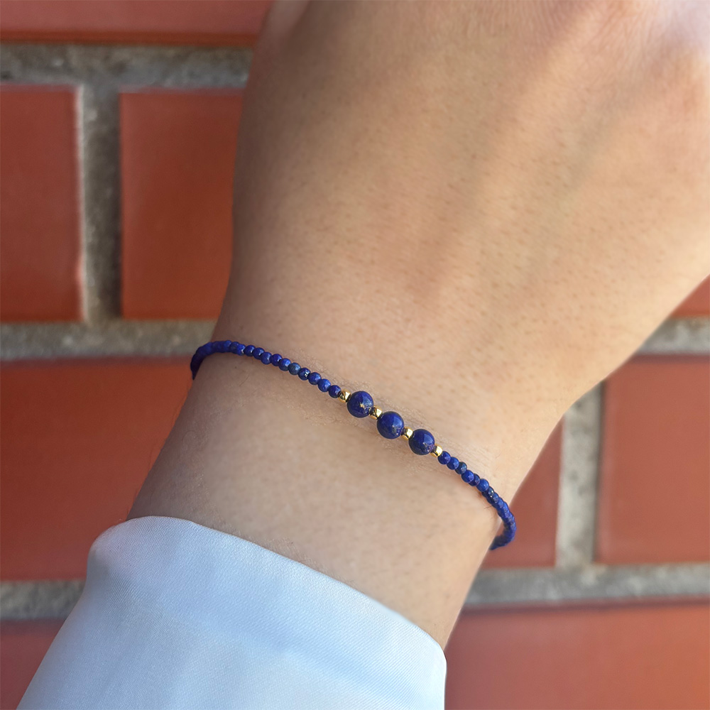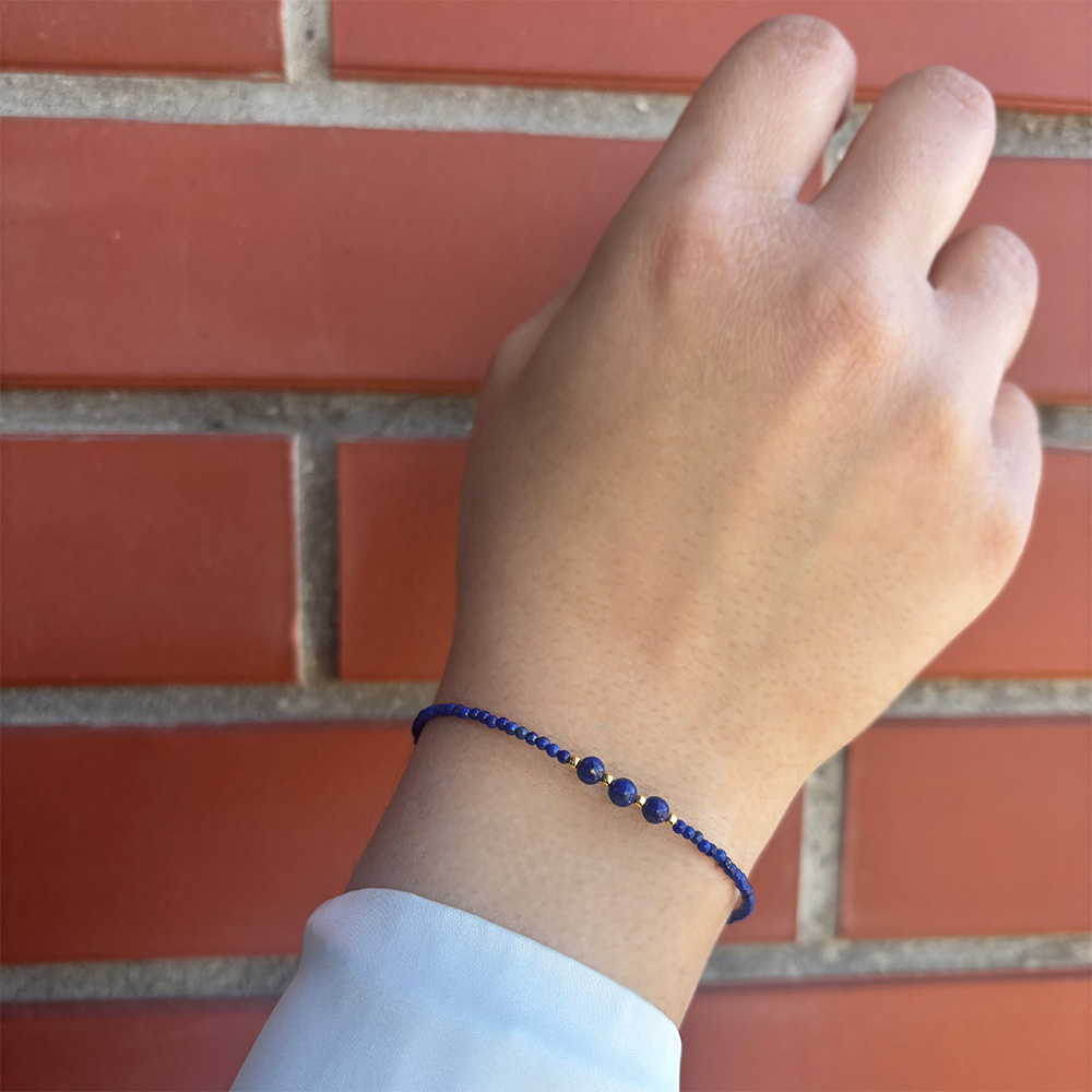 • Ένα υπέροχο βραχιόλι με ημιπολύτιμο λίθο λάπις διαμέτρου 2 χιλιοστών.