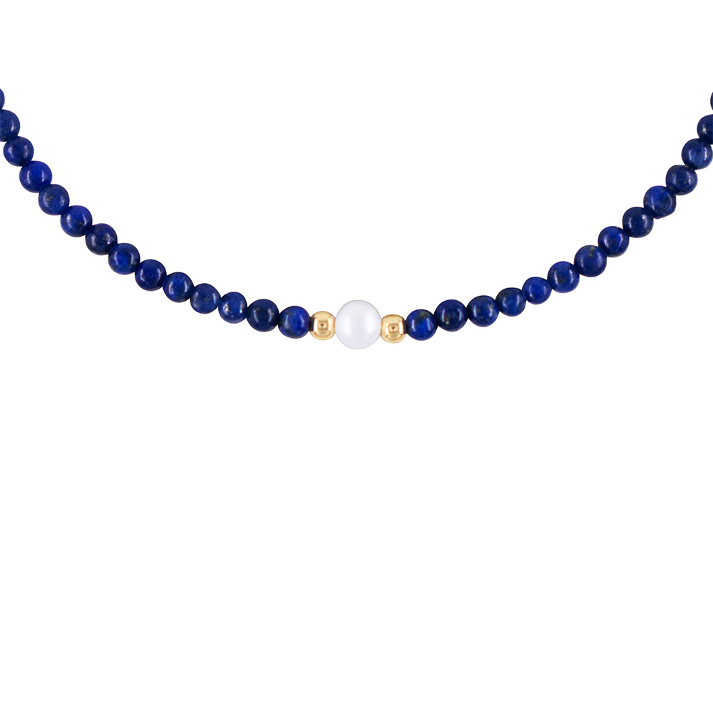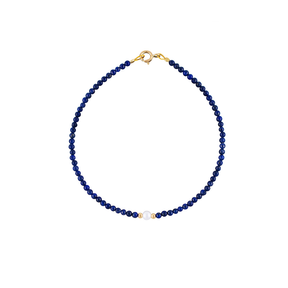 Βραχιόλι με Κ14 χρυσά στοιχεία, λάπις lazuli και μαργαριτάρι - B124410L