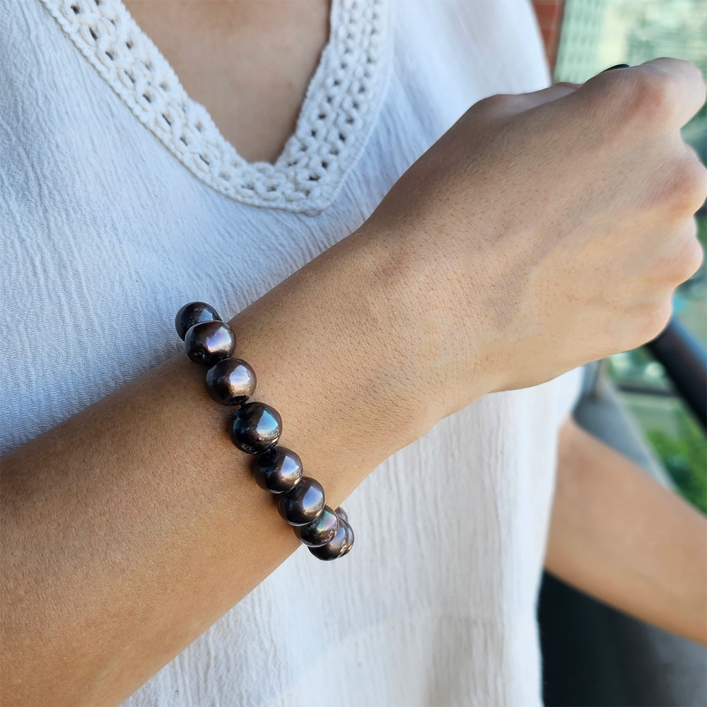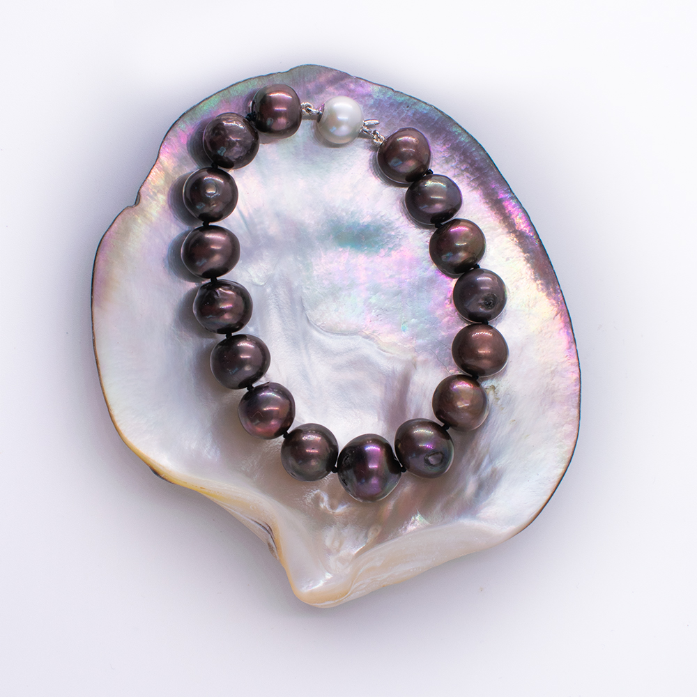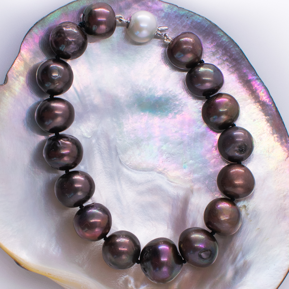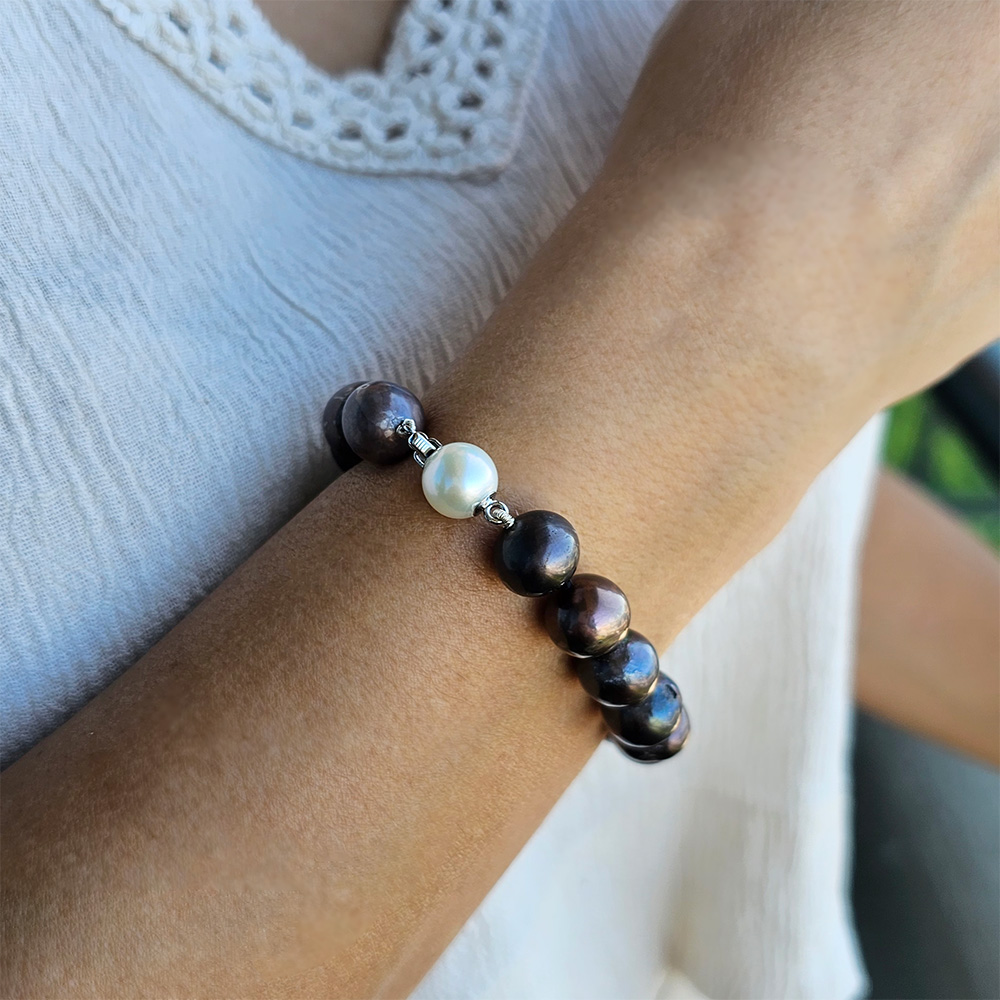• Ένα υπέροχο βραχιόλι με εντυπωσιακά μαύρα μαργαριτάρια γλυκού νερού Fresh Water Pearl διαμέτρου 11-14 χιλιοστά, άριστης ποιότητας.