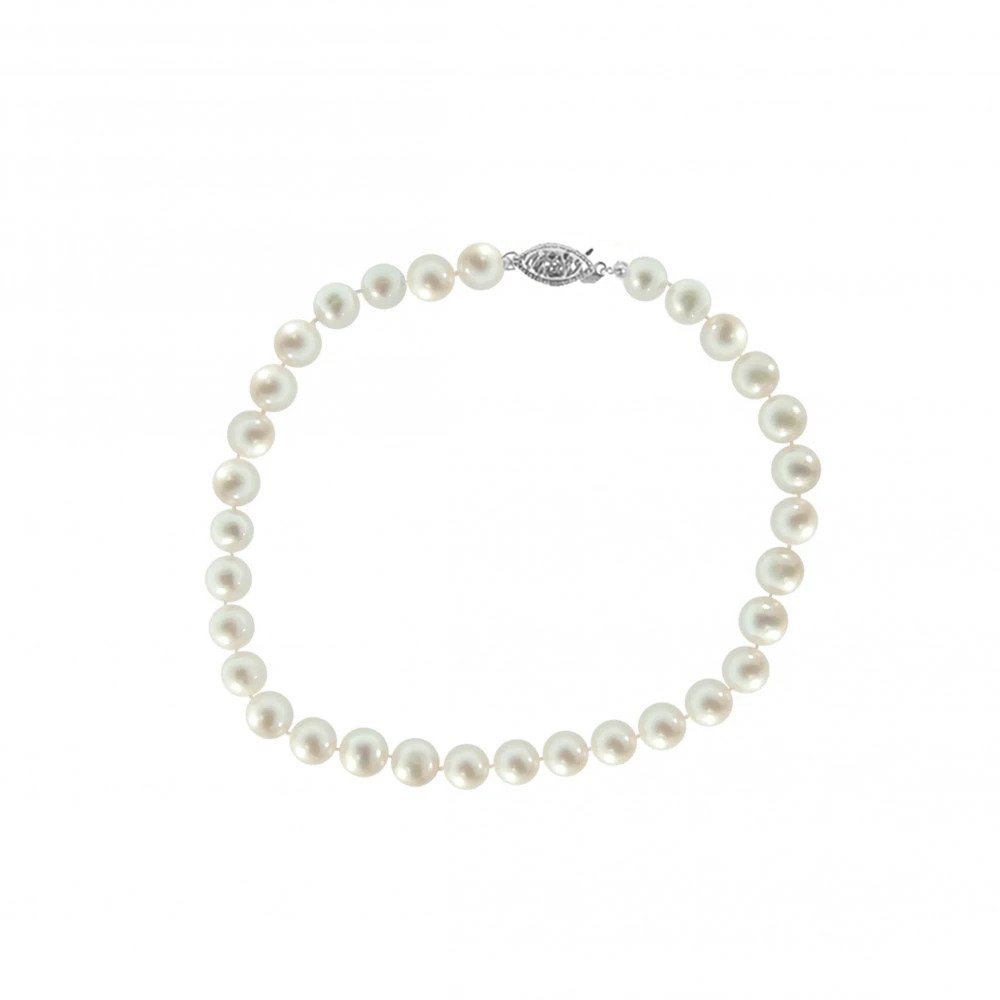 • Ένα υπέροχο βραχιόλι με λευκά στρογγυλοποιημένα μαργαριτάρια Fresh Water Pearl, άριστης ποιότητας διαμέτρου 4,5-5 χιλιοστών.