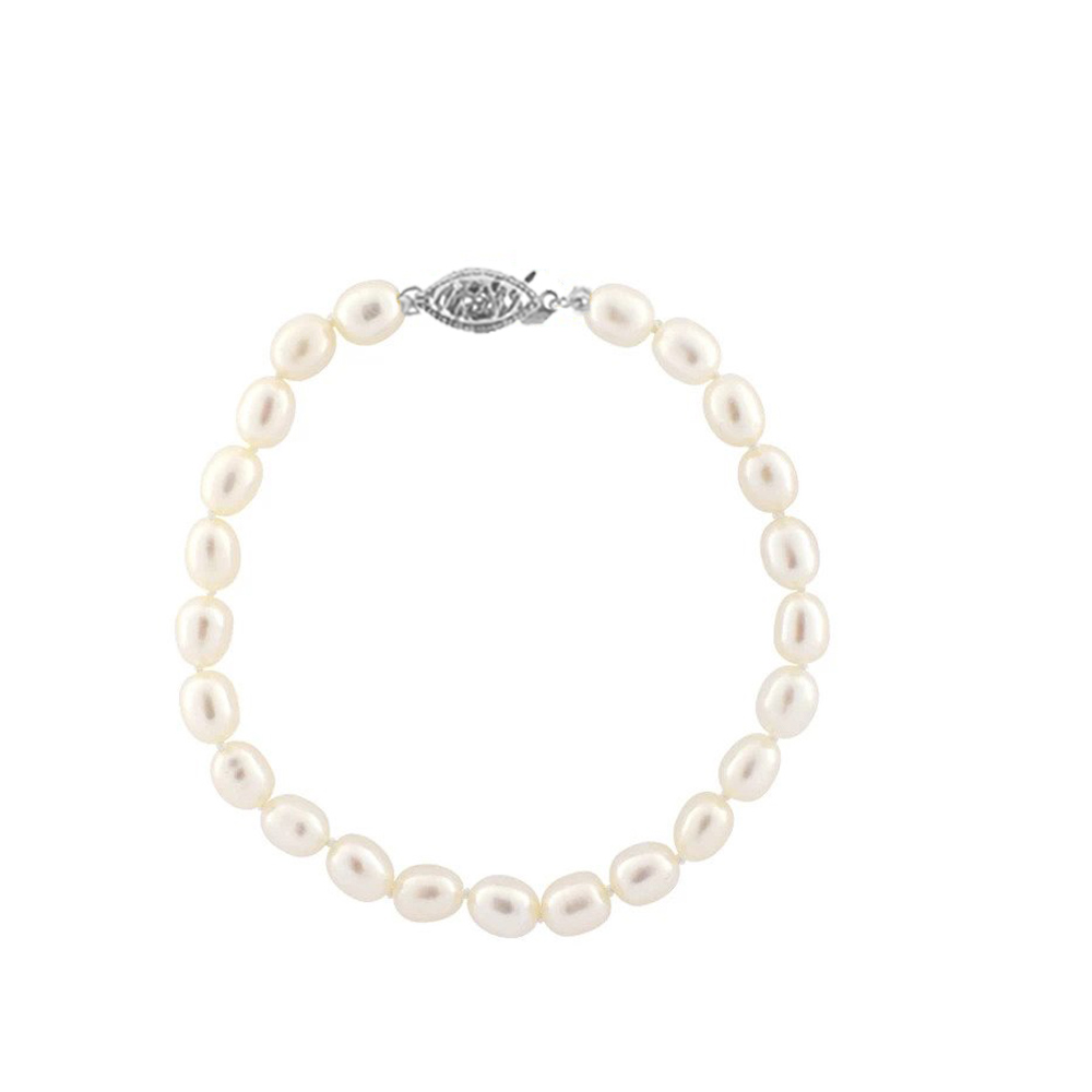 • Ένα υπέροχο βραχιόλι με λευκά μαργαριτάρια Fresh Water Pearl, άριστης ποιότητας διαμέτρου 6x7 χιλιοστών, σε σχήμα Long