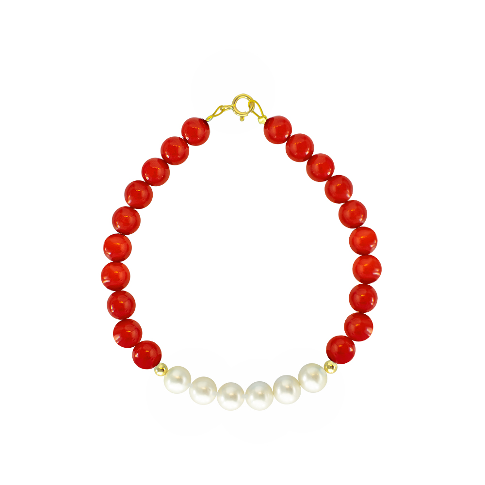 Βραχιόλι με Κ14 χρυσό κούμπωμα, κοράλλι και μαργαριτάρια - F124334C
