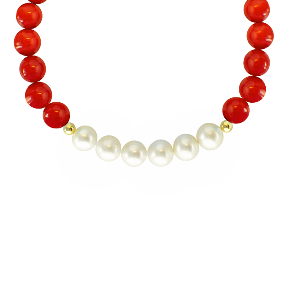 Τα μαργαριτάρια χωρίζονται από τα κοράλλια με 2 χρυσές ροδέλες 14 καρατίων.