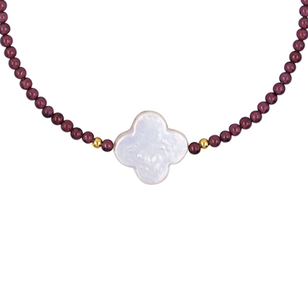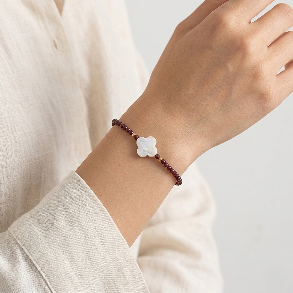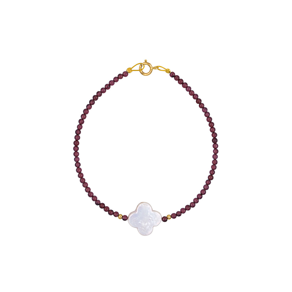Νέο Βραχιόλι με Κ14 χρυσά στοιχεία, γρανάδα και λευκό Biwa μαργαριτάρι - B1252281