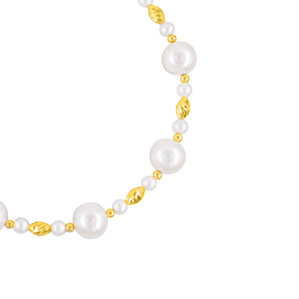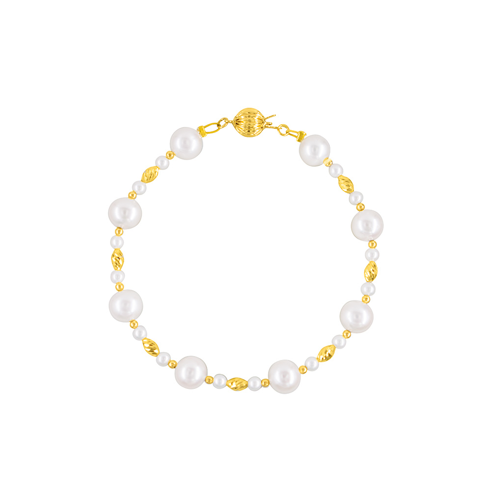 Βραχιόλι με Κ18 και Κ14 χρυσά στοιχεία και λευκά μαργαριτάρια - Β126105
