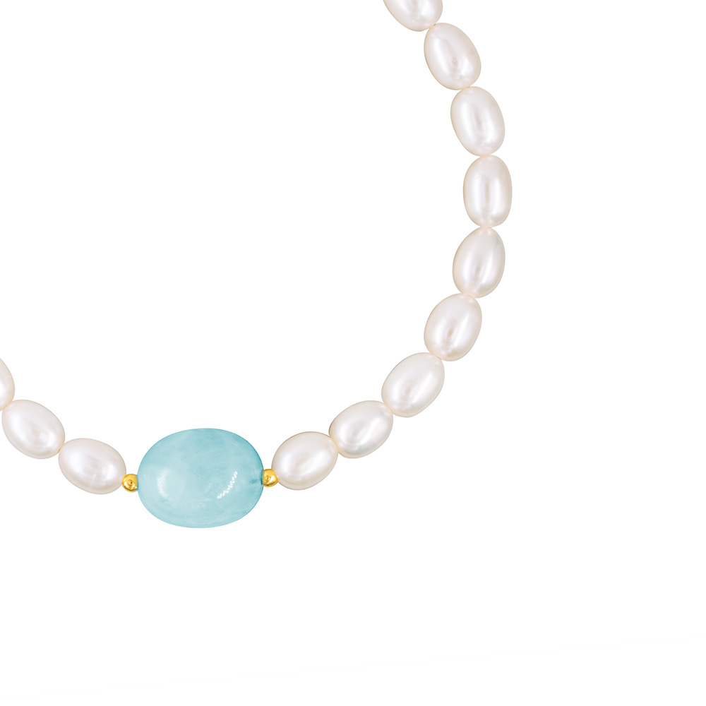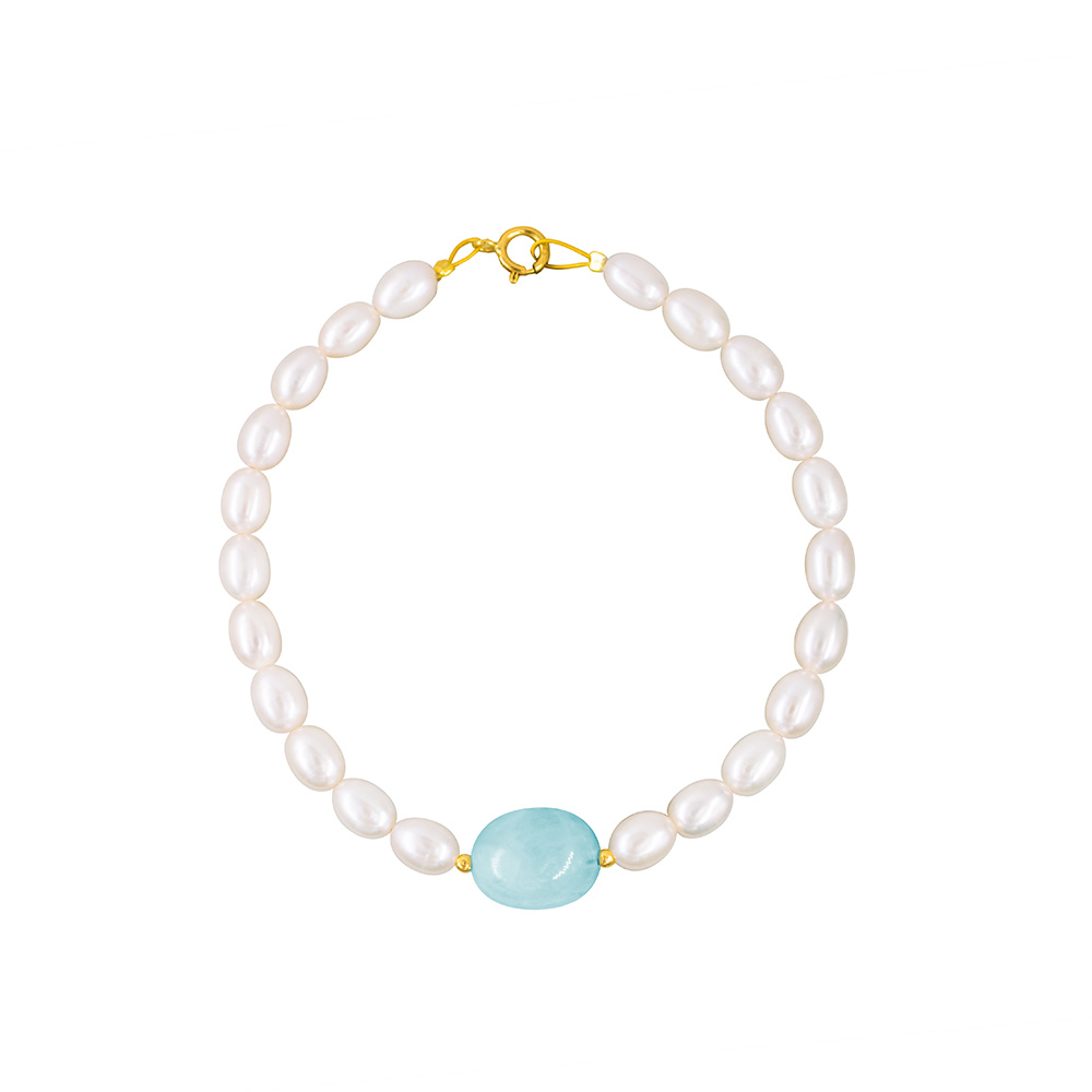 Βραχιόλι με Κ14 στοιχεία, μαργαριτάρια και aqua - B126332