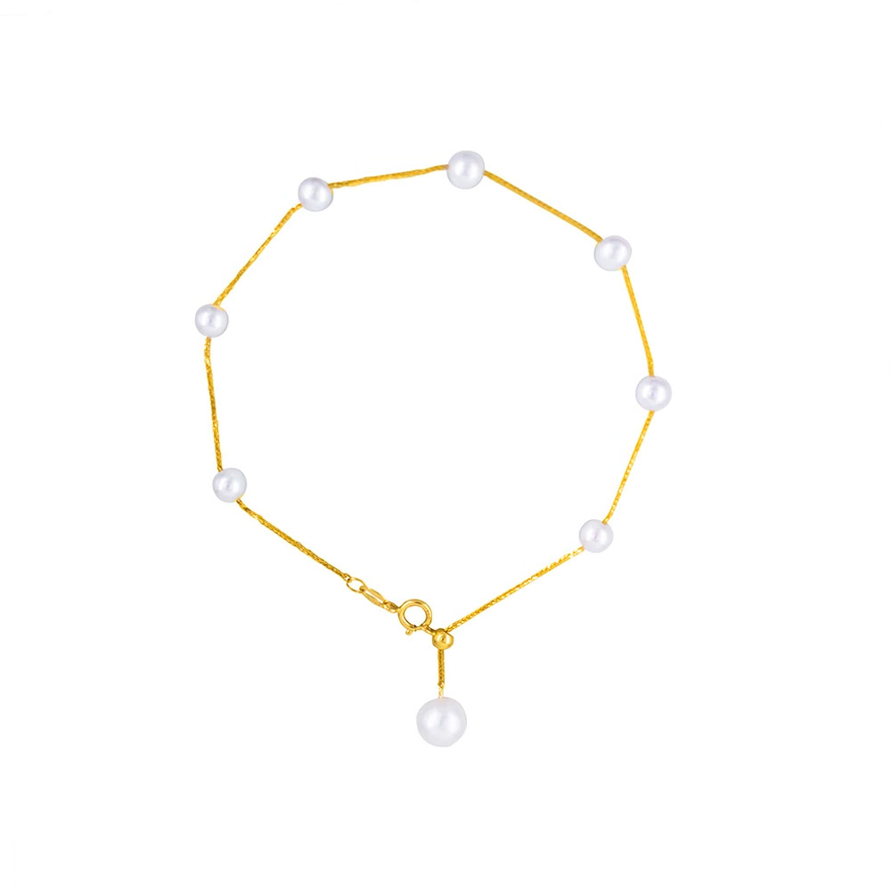 Βραχιόλι με Κ18 χρυσή αλυσίδα και λευκά μαργαριτάρια Q.T.V. Akoya - B126313