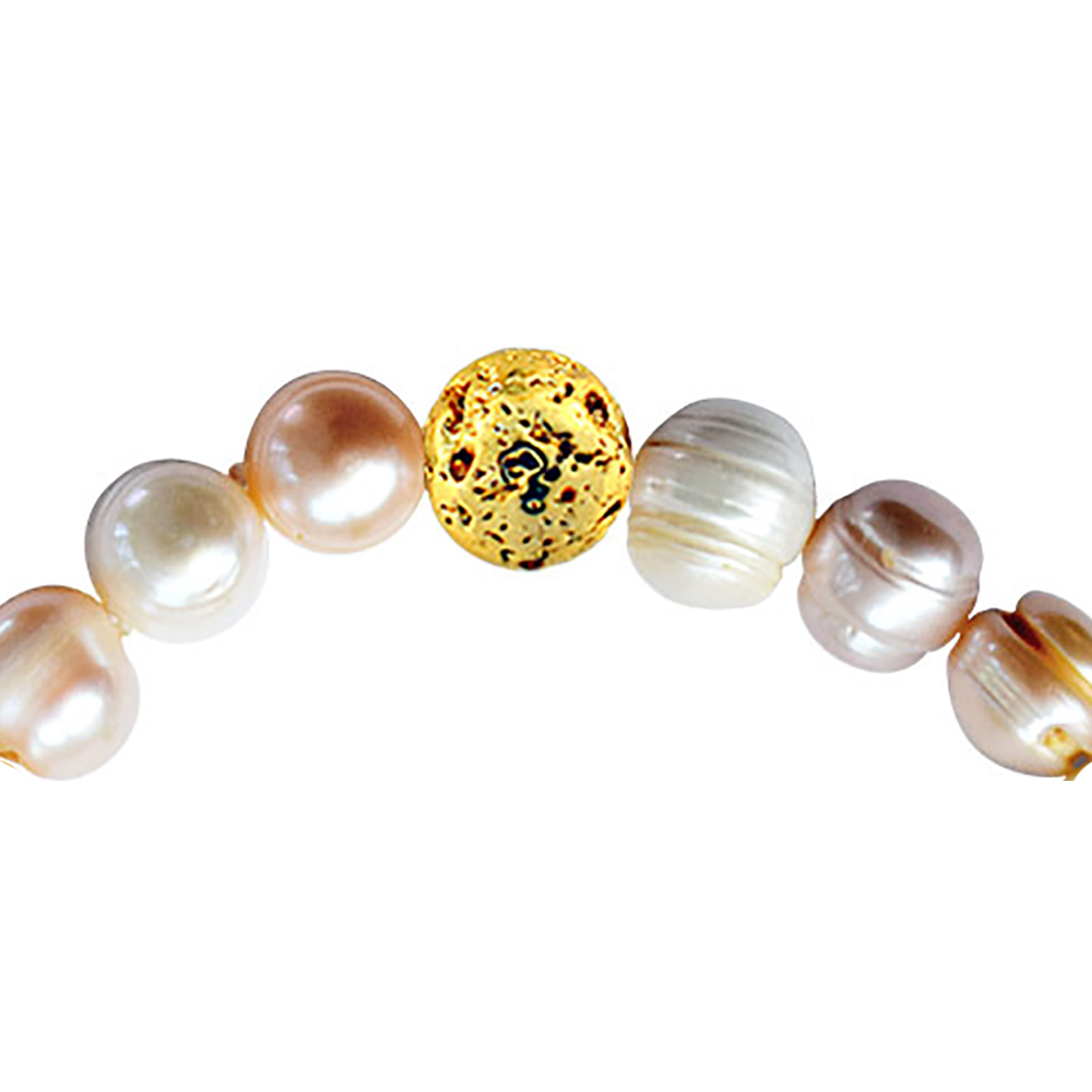 Βραχιόλι με μαργαριτάρια 9-10mm και Lava - M123473