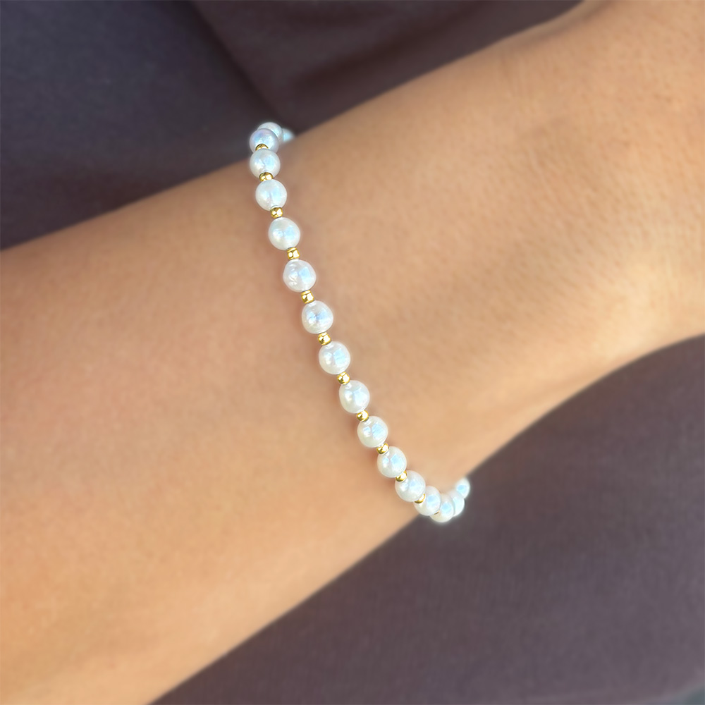 'Ενα διαχρονικό βραχιόλι που συνδυάζει την κλασική ομορφιά των μαργαριταριών με τη λάμψη του χρυσού, που θα λατρέψετε να φοράτε.