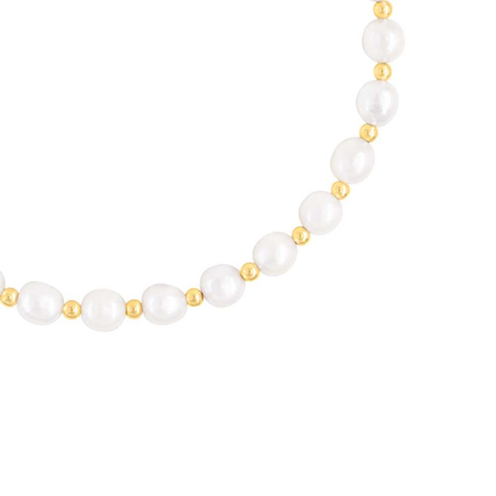 Βραχιόλι με Κ14 χρυσά στοιχεία και λευκά μαργαριτάρια - B125971