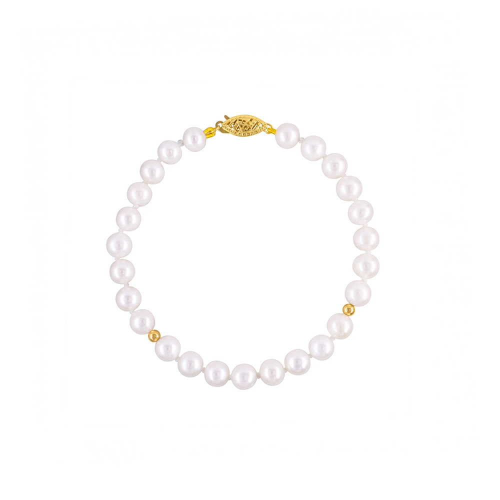 Βραχιόλι με Κ14 χρυσό κούμπωμα και λευκά μαργαριτάρια - B126182