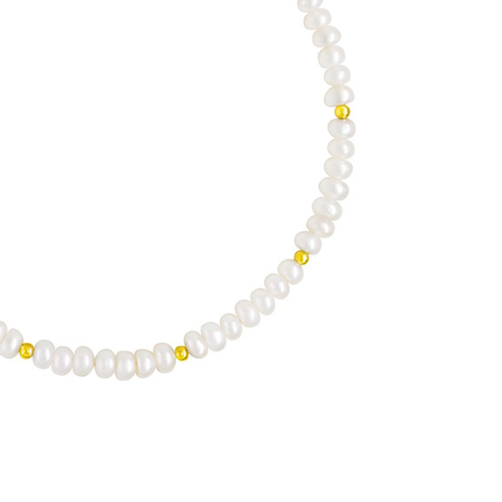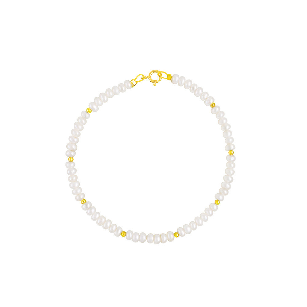 Βραχιόλι με Κ14 χρυσά στοιχεία και λευκά μαργαριτάρια - BR126420