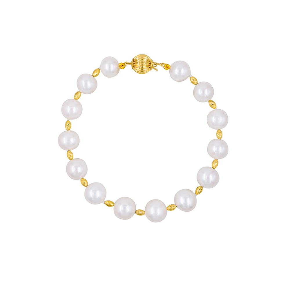 Βραχιόλι με Κ18 χρυσά στοιχεία και λευκά μαργαριτάρια - B126821