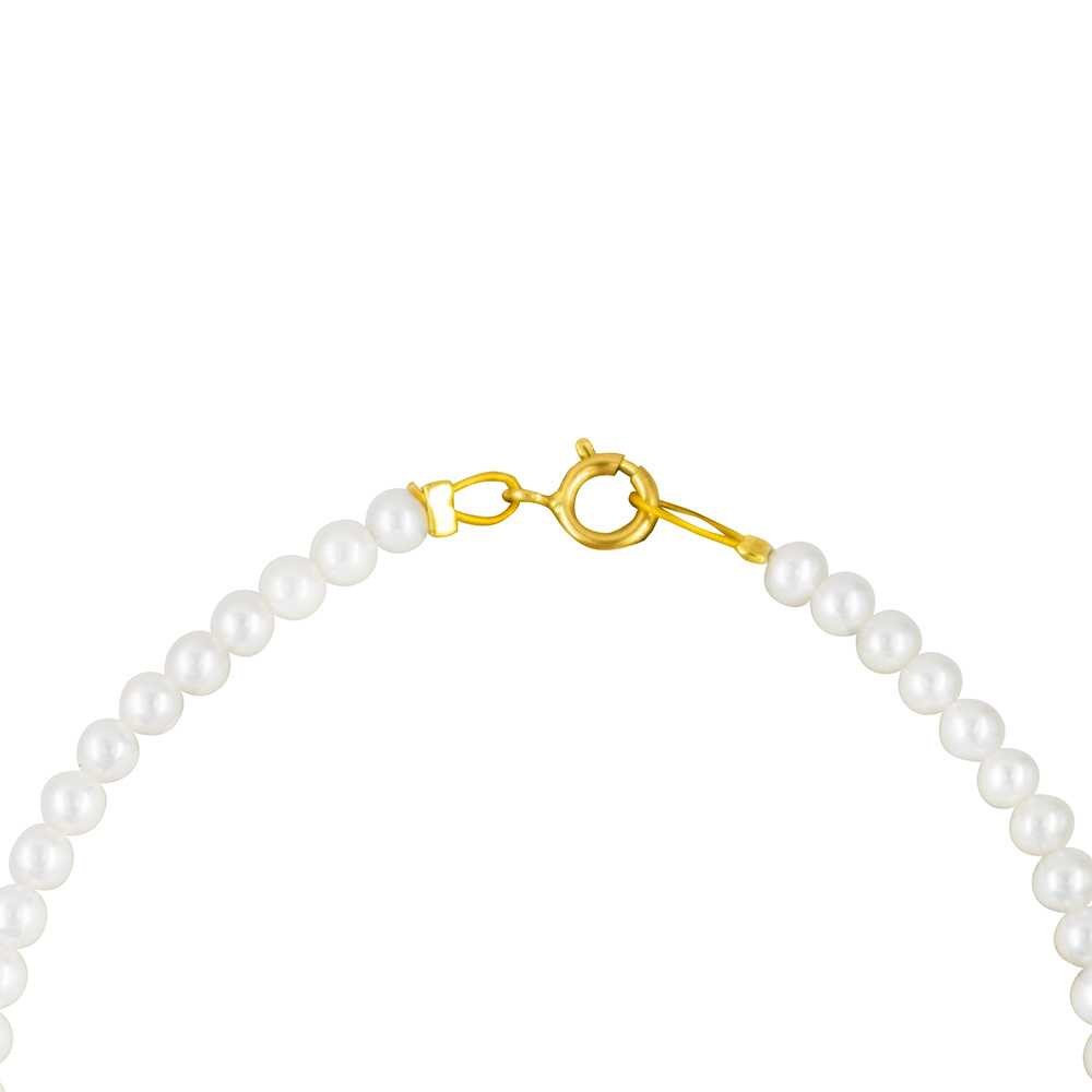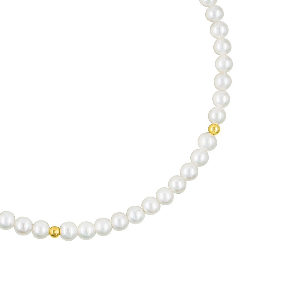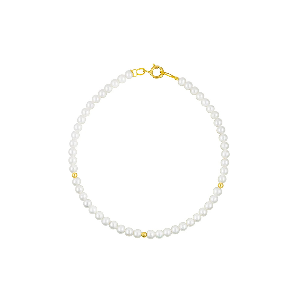 Βραχιόλι με Κ14 χρυσά στοιχεία και στρόγγυλα λευκά μαργαριτάρια - B126309