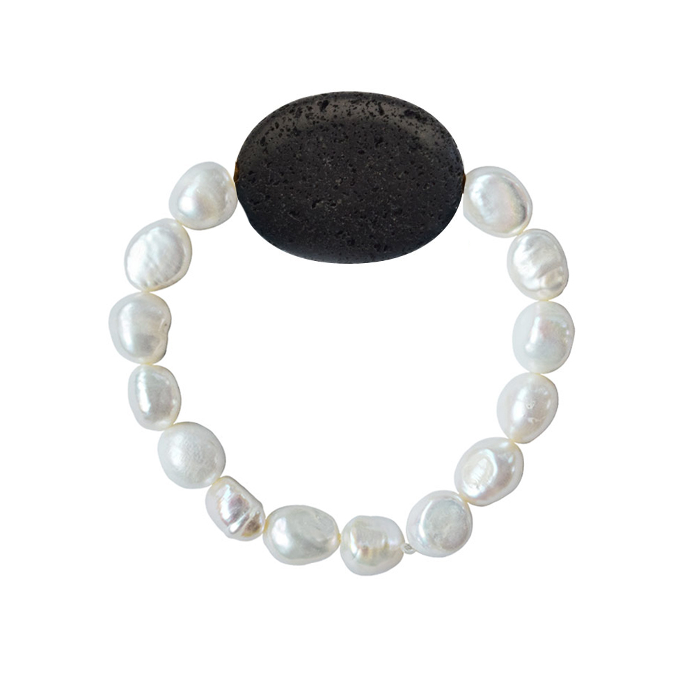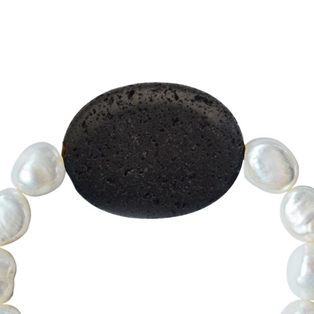 Βραχιόλι με λευκα μαργαριτάρια 8x10mm και Lava - M123475L