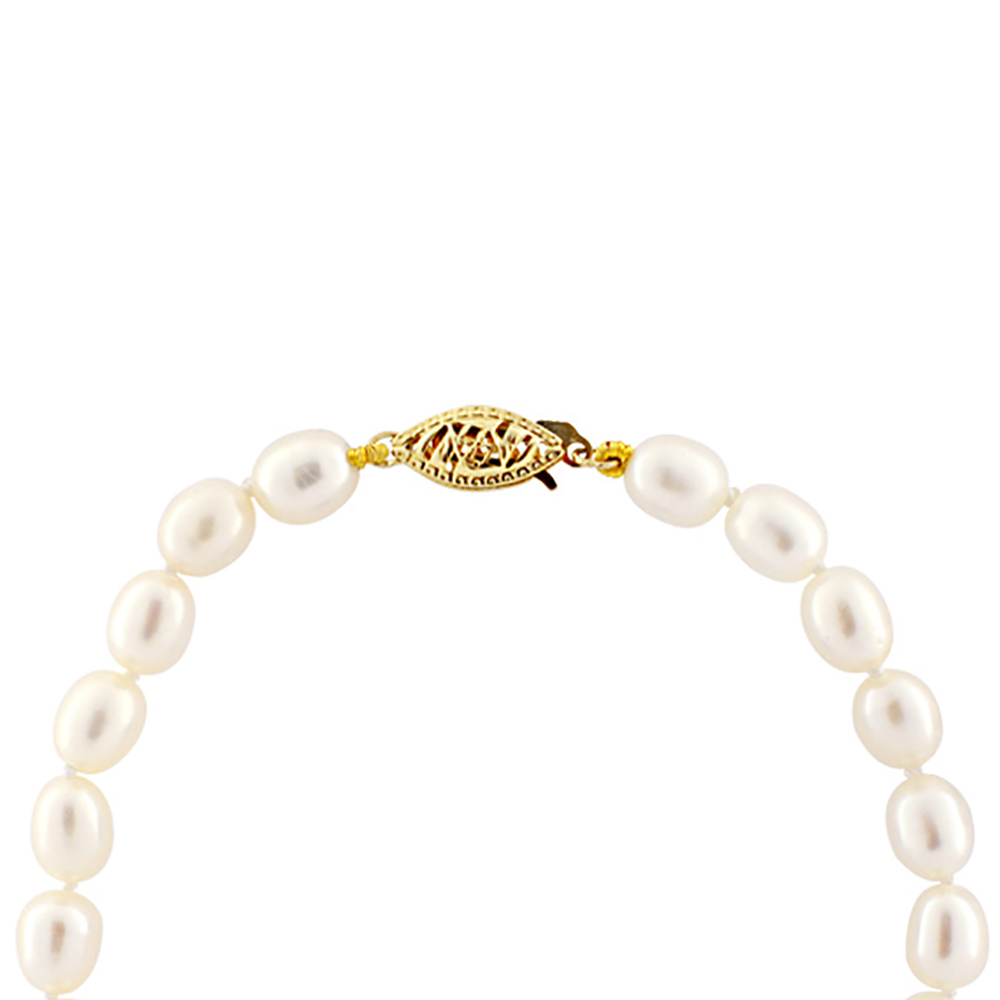 • Ένα υπέροχο βραχιόλι με λευκά μαργαριτάρια Fresh Water Pearl, άριστης ποιότητας διαμέτρου 6 x 7 χιλιοστών.