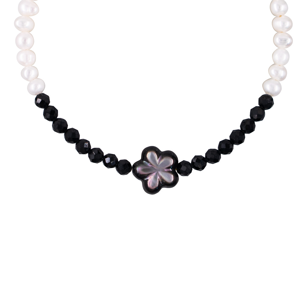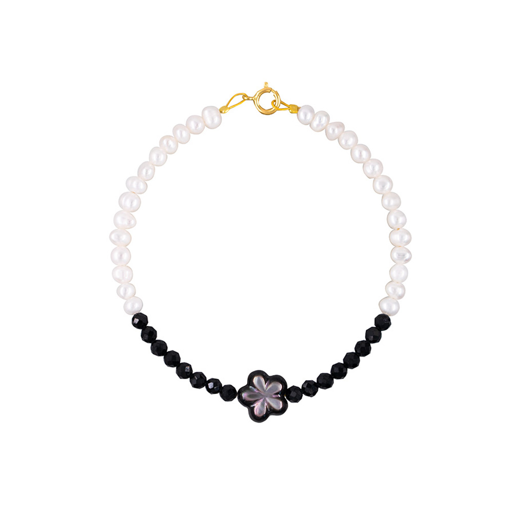 Βραχιόλι με Κ14 χρυσό κούμπωμα, μαργαριτάρια και spinel - B125638