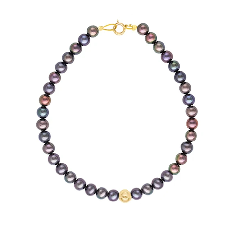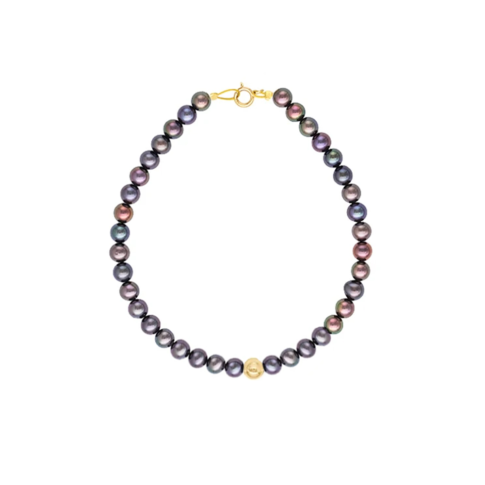 Βραχιόλι με Κ14 χρυσό κούμπωμα και μαύρα μαργαριτάρια - F124831B