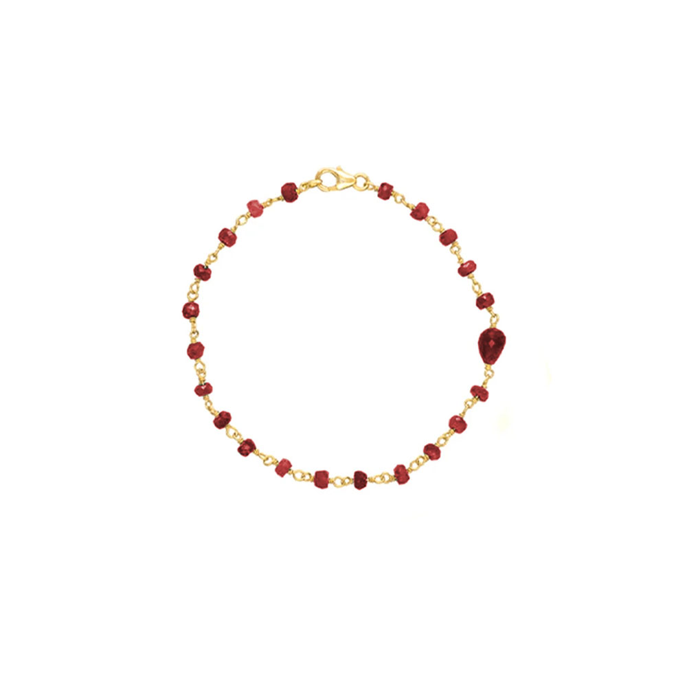 • Ένα υπέροχο βραχιόλι με ρουμπινίτες σε επιχρυσωμένη αλυσίδα από ασήμι 925. Το κόσμημα αποτελείται από:
