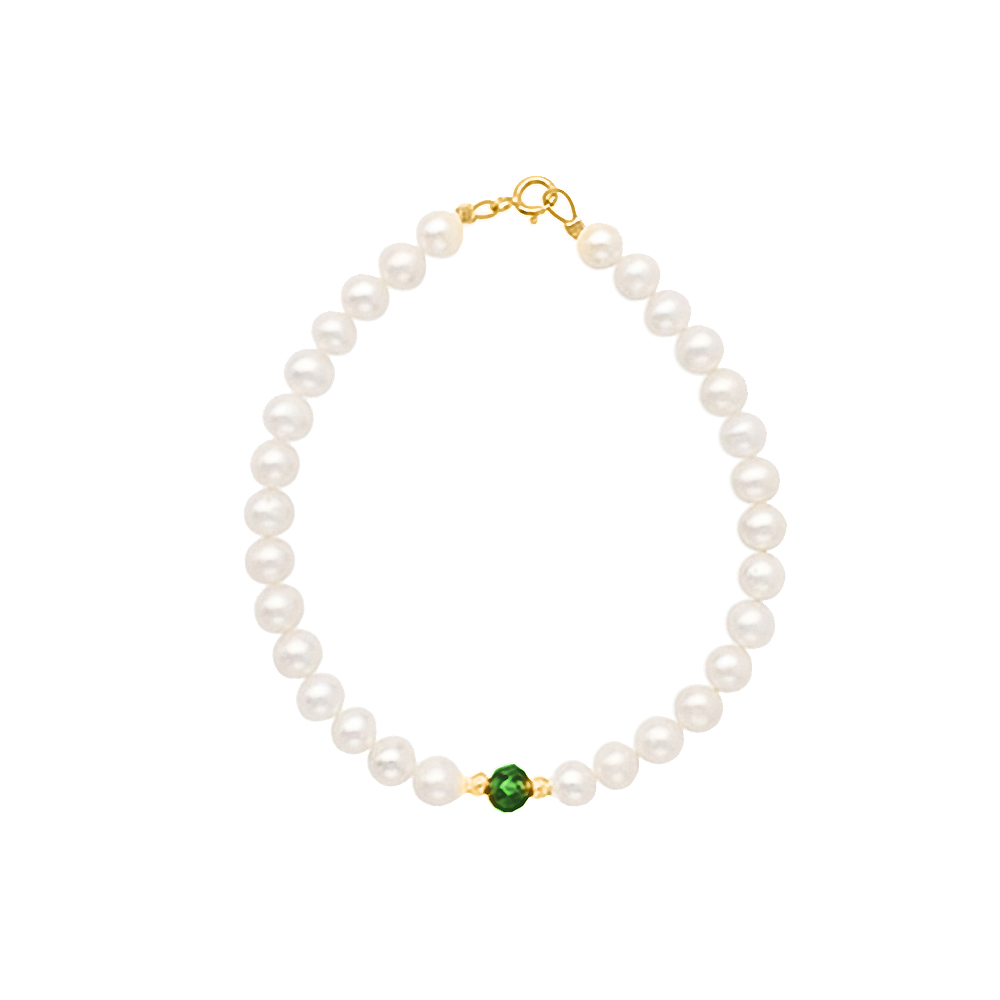 Βραχιόλι με χρυσό Κ14 κούμπωμα με μαργαριτάρια και ζιργκόν - S123986G