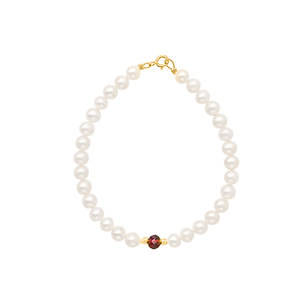 Βραχιόλι με χρυσό Κ14 κούμπωμα με μαργαριτάρια και ζιργκόν - S123986R