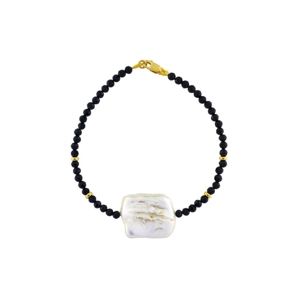 Βραχιόλι με Κ14 χρυσό κούμπωμα, spinel και μαργαριτάρι - M123176