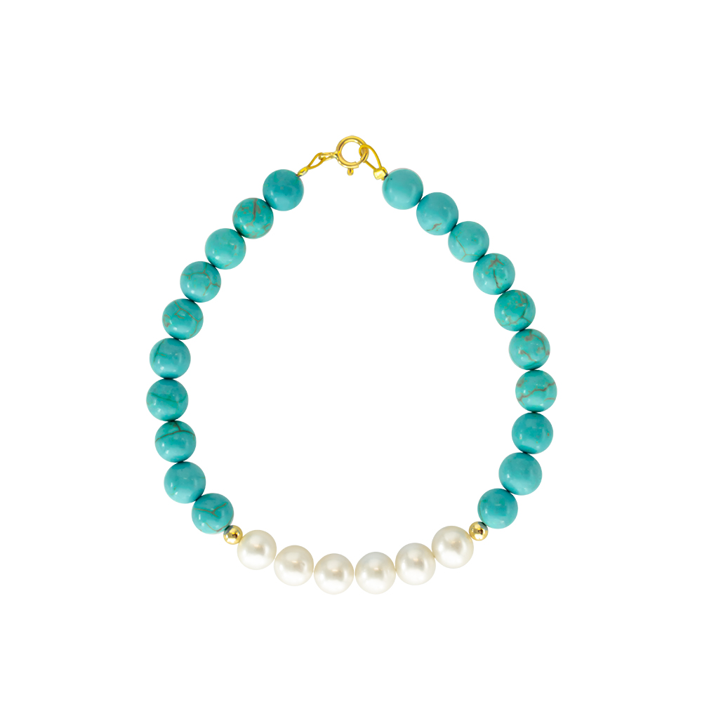 Βραχιόλι με Κ14 χρυσό κούμπωμα, τιρκουάζ και μαργαριτάρια - F124334T